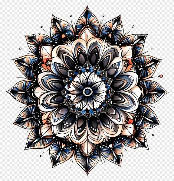 Download this stunning, free high-quality PNG of a vibrant crocheted mandala. This intricate textile art piece features a captivating blend of floral and geometric patterns, meticulously crafted with rich hues of red, orange, cream, and deep blue against a striking black background. Perfect for graphic design, digital art, textile projects, or adding a unique bohemian and handcrafted aesthetic to any creative endeavor. Get this detailed, cultural-inspired medallion design instantly for your next project!