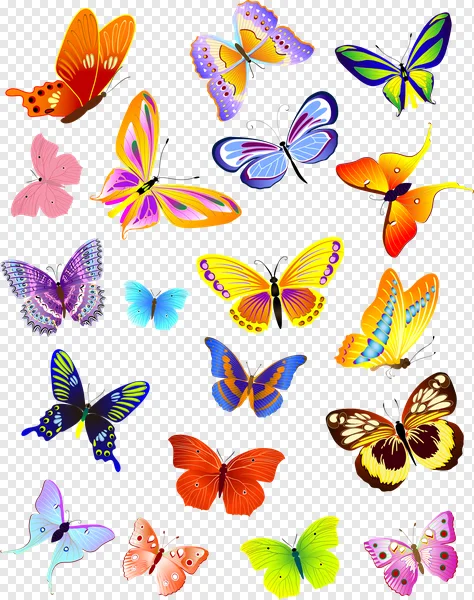 Discover a stunning collection of vibrant and diverse butterfly PNG images available for free download! This high-quality illustration features 18 uniquely colored and patterned butterflies, perfect for adding a touch of natural beauty to your projects. From brilliant oranges, yellows, purples, and blues to delicate pinks and intricate wing designs, these transparent background butterflies are ideal for scrapbooking, graphic design, educational materials, website banners, invitations, and more. Enhance your creative works with this beautiful assortment of flying insects. Download now and bring your designs to life with these captivating and detailed illustrations.