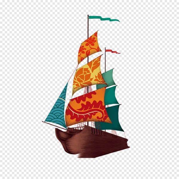 Embark on a creative voyage with this stunning free PNG of a vibrant sailing ship. Featuring beautifully patterned sails, including intricate floral designs, bold swirling motifs, and a classic Japanese Seigaiha wave pattern, this unique vessel is a true work of art. The rich wooden hull and dynamic, wind-filled sails in shades of teal, orange, red, and yellow make it perfect for adding a touch of adventure or vintage charm to your projects. Ideal for graphic design, digital art, scrapbooking, educational materials, or personal creative endeavors. Download this transparent PNG today and let your imagination set sail!