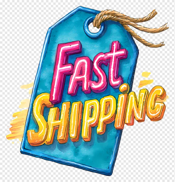 Instantly upgrade your online store or marketing materials with our vibrant 'Fast Shipping' tag PNG. This eye-catching graphic features bold, neon-style text in bright pink and yellow on a beautiful watercolor blue tag, complete with a realistic rope detail. Perfect for e-commerce websites, product pages, promotional banners, social media posts, and advertising campaigns to highlight quick delivery services. The transparent background makes it easy to integrate seamlessly into any design. Download this high-quality, free PNG for a stylish and professional touch that communicates efficiency and speed to your customers.