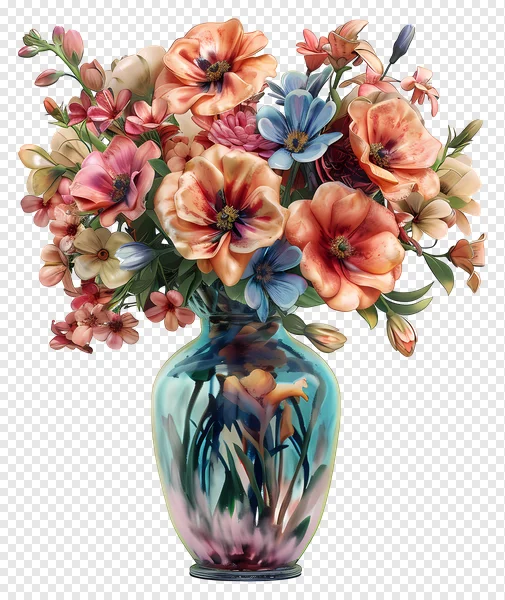 Tags: Floral bouquet artistic flowers blue flowers botanical clipart decorative floral digital art flower arrangement flowers in vase free download glass vase high-quality peach blooms pink flowers spring summer transparent PNG transparent background turquoise vase vibrant flowers