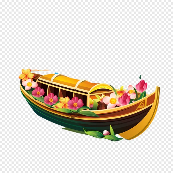 Add a splash of vibrant color and cultural charm to your projects with this exquisite free PNG of a floral decorated boat! This beautiful illustration features a traditional wooden boat, reminiscent of a festive punt or a serene houseboat, adorned with a generous display of pink, yellow, and white blossoms, set against lush green leaves. Perfect for enhancing travel blogs, cultural event promotions, festival designs, scrapbooking, or digital art. Its high-quality resolution and transparent background make it effortlessly integrable into any design. Download this colorful flower boat clipart instantly to bring a serene, festive, or tropical atmosphere to your creative works. Get your free decorative boat PNG today!