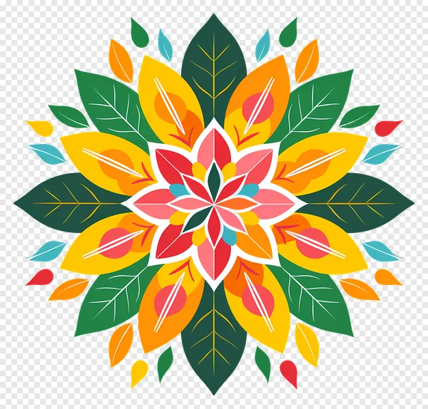 Discover a stunning, vibrant floral mandala PNG, perfect for adding a splash of color and artistic flair to your projects! This captivating abstract botanical illustration features a beautiful array of red, pink, yellow, orange, and green leaves and petals arranged in a symmetrical, eye-catching design. Set against a transparent background, its modern, flat style makes it ideal for graphic design, web backgrounds, digital art, print, craft projects, and more. Enhance your creative work with this high-quality, free-to-download vector art piece. Get your free colorful flower and leaf pattern now and bring a burst of energy to your designs!