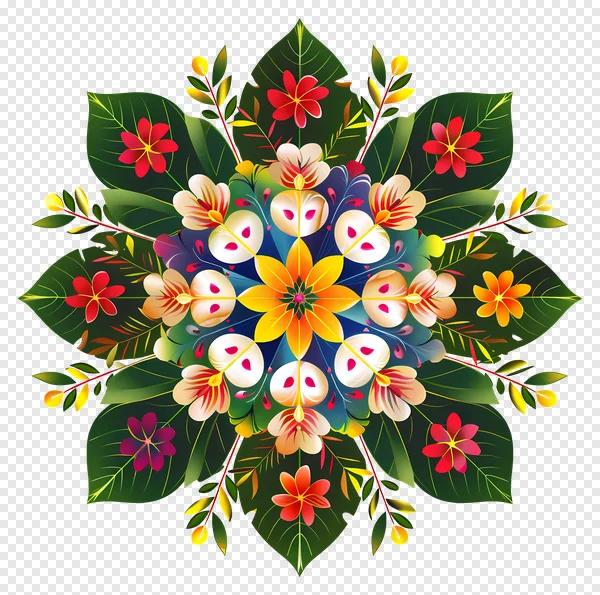 Download this stunning, high-resolution floral mandala PNG image for free! Perfect for graphic design, digital art, scrapbooking, website backgrounds, and more. This colorful design features a symmetrical arrangement of tropical flowers and lush green leaves, creating a beautiful and eye-catching visual. Enhance your projects with this versatile and royalty-free floral element. Get your free download now!