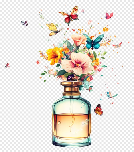 Download this exquisite free PNG image featuring a stunning perfume bottle from which a burst of vibrant, colorful flowers and graceful butterflies erupts. Perfect for adding a touch of elegance and luxury to your creative projects, this transparent background graphic showcases beautiful hibiscus, yellow blossoms, and other blooms alongside dynamic watercolor-style splatters. Ideal for websites, social media, presentations, digital art, or marketing materials. Enhance your designs with this artistic and fragrant visual. Available for instant free download.