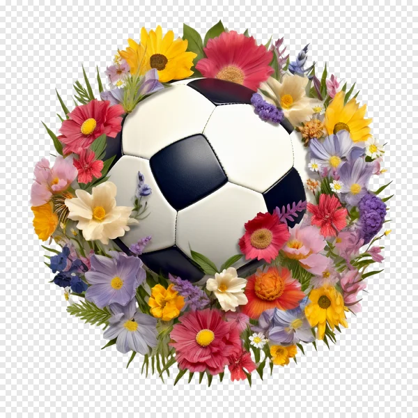 Download this stunning free PNG image featuring a classic black and white soccer ball beautifully embraced by a vibrant, circular wreath of diverse flowers. This eye-catching design showcases a rich assortment of red, yellow, pink, purple, and white blossoms, accented with lush green leaves, all set on a transparent background. Perfect for sports-themed events, spring or summer designs, invitations, scrapbooking, digital art, or adding a fresh, energetic touch to any creative project. Get this high-quality, unique floral football graphic today and bring a pop of color and natural charm to your works!