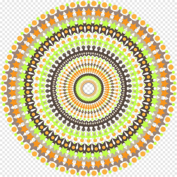 Discover our captivating free PNG image featuring a vibrant geometric mandala design. This unique abstract pattern showcases concentric rings filled with alternating bright neon green stars, striking orange circles, and subtle brown and grey dots, all set against a sleek black background. Its intricate radial symmetry creates a mesmerizing visual, perfect for adding a modern and energetic touch to your digital projects, graphic designs, website backgrounds, social media posts, or creative crafts. Download this high-quality, eye-catching circular artwork instantly and enhance your visual content with a burst of dynamic color and pattern!