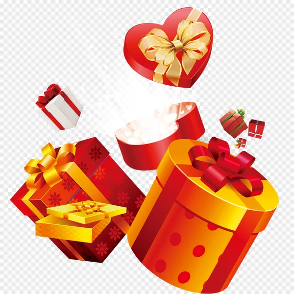 Unwrap the magic with our high-quality, free PNG image featuring a stunning array of colorful gift boxes! This transparent asset showcases a beautiful red heart-shaped gift box, elegantly tied with a golden ribbon, alongside an open heart box revealing a shimmering cascade of glowing hearts. You'll also find classic square and rectangular presents adorned with luxurious red and gold ribbons, polka dot patterns, and subtle floral designs. Perfect for conveying joy and celebration, these festive gift elements are ideal for Valentine's Day, Christmas, birthdays, anniversaries, or any special event. Easily enhance your greeting cards, web designs, social media graphics, and digital projects. Download this versatile collection of wrapped presents with transparent backgrounds for free and add a delightful touch to your creative work!