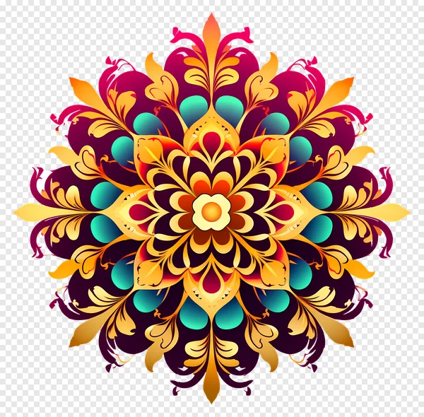 Discover our stunning free PNG download featuring a vibrant, ornate floral mandala design. This exquisite graphic showcases a luxurious blend of shimmering gold, rich magenta, and captivating teal gradients, set elegantly against a deep black background. Perfect for adding a touch of exotic elegance or spiritual depth to your graphic design projects, website, social media, prints, or digital artwork. Download this high-quality, symmetrical decorative element for free and elevate your creative endeavors with its intricate details and dazzling color palette. Ideal for backgrounds, invitations, posters, and more. Get your free golden mandala PNG now!