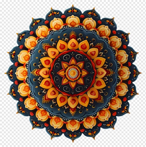 Discover a stunning, high-quality vibrant mandala PNG image featuring an intricate floral pattern in rich golden orange, warm yellow, deep red, and elegant teal blue tones against a sleek black background. Perfect for adding a touch of spiritual elegance or bohemian flair to your designs. Whether you're creating posters, social media graphics, website backgrounds, or craft projects, this beautiful, ornate decorative art piece offers unique visual appeal. Enhance your creative work instantly – download this detailed and colorful ethnic mandala design for free today!