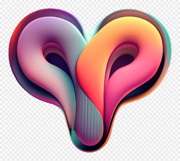 Download this stunning vibrant gradient abstract heart PNG for free. Featuring a beautifully rendered 3D heart shape, composed of flowing, intertwined ribbons in a captivating spectrum of colors including pink, purple, orange, red, and teal. This modern and fluid design, with its smooth, glossy texture set against a stark black background, creates a powerful visual impact. Perfect for Valentine's Day projects, digital art, graphic design, social media posts, website banners, or adding a touch of contemporary elegance to any creative endeavor. Get your high-quality, transparent PNG today and elevate your designs!