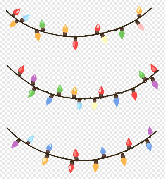 Brighten your designs with this free transparent PNG of vibrant, hand-drawn Christmas string lights! This festive garland features multiple colorful bulbs in red, green, blue, yellow, pink, and purple, arranged in three cheerful strands. Perfect for holiday greeting cards, winter event invitations, website banners, social media posts, or any project needing a touch of seasonal sparkle. Easily layer these high-quality Christmas decorations onto any background. Download this essential holiday asset now and add a joyful glow to your creative work, completely free!