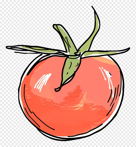 Download this vibrant, hand-drawn tomato PNG for free! This unique illustration features a fresh, red-orange tomato with a detailed green stem, rendered in a charming sketchy style with bold black outlines and a transparent background. Perfect for enhancing your cooking blogs, recipe cards, healthy eating promotions, grocery store flyers, menu designs, or any graphic design project. Get high-quality vegetable clip art effortlessly and add a fresh, organic touch to your digital creations. Easy to integrate and completely free for personal and commercial use, making your designs pop with natural appeal.
