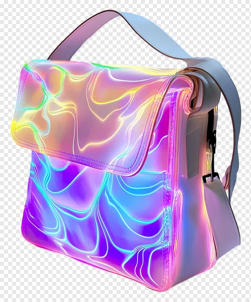 Unleash your creativity with this stunning free PNG download of a futuristic holographic neon bag. Featuring vibrant, iridescent colors and glowing abstract wave patterns on a transparent background, this eye-catching messenger bag is perfect for adding a modern, trendy touch to your graphic design projects. Ideal for websites, social media, digital art, posters, presentations, and more. Get this high-quality, unique glowing backpack image instantly for your next creative endeavor. Download now and stand out!