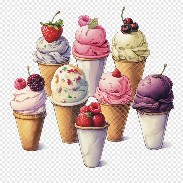 Indulge in our delightful collection of free ice cream scoops PNG images! This high-quality graphic features an array of delicious flavors including classic vanilla, luscious strawberry, sweet raspberry, creamy pink, and rich purple ice creams, some topped with colorful sprinkles, fresh strawberries, raspberries, blackberries, and cherries. Served in crisp waffle cones and modern paper cups, this vibrant illustration is perfect for adding a sweet, summery touch to your menus, posters, website banners, digital art projects, or any design needing a cheerful dessert element. With its transparent background, this versatile PNG is ready for seamless integration. Download now and bring a taste of frozen deliciousness to your creations!