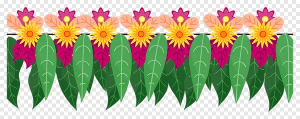 Tags: Indian decoration Thoranam Toran border design celebration clip art door hanging ethnic decor event decor festival banner festive border floral garland green leaves mango leaves marigold pink flowers traditional transparent PNG vector art vibrant colors yellow flowers