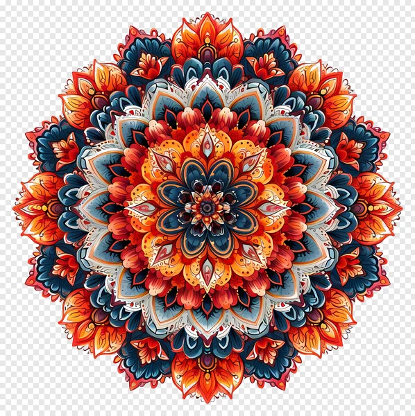 Discover this breathtaking, vibrant, and intricate floral mandala PNG image, available for free download! Featuring a stunning symmetrical design with rich hues of fiery red, radiant orange, and deep ocean blue, set against a dramatic black background, this high-quality graphic is perfect for adding a touch of spiritual elegance to your creative projects. Ideal for meditation apps, unique backgrounds, digital art, print designs, scrapbooking, and more. Enhance your designs with this beautiful, detailed ornate artwork and infuse them with positive energy. Get your free transparent PNG now!