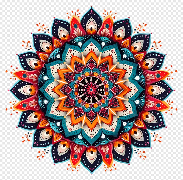 Download this stunning, high-resolution Vibrant Intricate Mandala PNG for free! Featuring a rich tapestry of orange, red, teal, and deep blue hues on a dark background, this symmetrical, ornate floral design embodies spiritual and bohemian aesthetics. Perfect for graphic design projects, creative backgrounds, meditation themes, printables, or adding an ethnic touch to your artwork. Get your free transparent mandala clipart now and enhance your designs with this captivating piece of spiritual art!