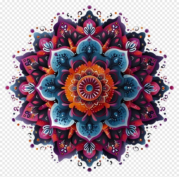 Download this stunning, vibrant jewel-toned mandala PNG image for free! Featuring intricate floral and sacred geometry patterns in rich blues, reds, oranges, and purples against a deep black background, this high-quality graphic is perfect for adding a touch of elegance and spirituality to your projects. Ideal for meditation guides, yoga studio branding, digital art, bohemian decor, t-shirt designs, social media posts, or website backgrounds. Get your transparent PNG download today and enhance your creative endeavors!