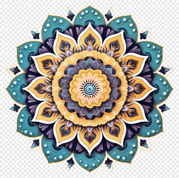Immerse your projects in spiritual elegance with this vibrant layered floral mandala PNG. Featuring a captivating symmetrical design, it showcases rich hues of yellow, deep blue, and striking teal against a transparent background. Perfect for meditation apps, yoga studio branding, decorative prints, graphic design, textile patterns, or digital art. This intricate and colorful ornamental graphic is available for free download in high-quality PNG format, ready to enhance your creative endeavors with its tranquil beauty and intricate details.
