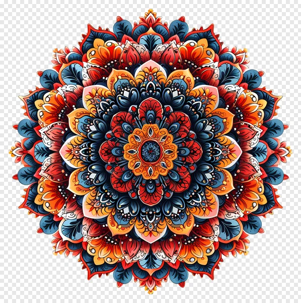 Download this stunning, high-resolution mandala PNG image for free! Perfect for adding a touch of bohemian elegance to your projects, this intricate floral design features a rich color palette of reds, oranges, blues, and whites. Use it for scrapbooking, digital art, website backgrounds, invitations, or any creative endeavor. No attribution required – simply download and enjoy! Enhance your designs with this beautiful, symmetrical artwork. Available in transparent PNG format for easy integration.