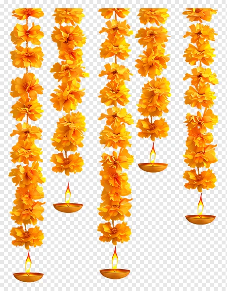 Download this stunning free PNG featuring vibrant golden marigold flower garlands beautifully intertwined with traditional lit diyas (oil lamps) on a transparent background. Perfect for adding a festive touch to your Diwali, Dussehra, Ganesh Chaturthi, or other Hindu festival designs. Ideal for creating eye-catching invitations, social media posts, website banners, or decorative overlays. Celebrate Indian culture with this high-quality, ready-to-use graphic. Get your free download now and illuminate your creative projects!