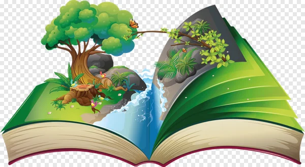 Unfold a world of imagination with this captivating free PNG download featuring a vibrant nature scene emerging from the pages of an open book. This detailed illustration showcases a lush green forest, a cascading waterfall, colorful birds perched on a tree stump, an elegant butterfly, and tropical plants against a rocky landscape. Perfect for educational materials, children's books, storytelling projects, eco-friendly themes, or adding a magical touch to presentations and web designs. Download this high-quality, transparent PNG to inspire creativity and bring your narratives to life, ideal for graphic designers, educators, and content creators looking for unique nature-themed visuals.