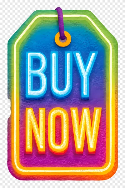 Download this captivating 'BUY NOW' neon gradient tag PNG for free! Perfect for adding an eye-catching, modern call-to-action to your e-commerce website, online store, digital ads, or marketing materials. This vibrant, glowing label features stunning multi-color gradients, from cool blues and greens to warm oranges and purples, ensuring your promotions stand out. With its unique illuminated aesthetic and transparent background, it integrates seamlessly into any design. Elevate your sales, drive conversions, and grab customer attention with this high-quality, dynamic graphic today!