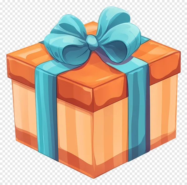 Download this charming, high-quality orange gift box PNG with a beautiful light blue ribbon and bow for free. Perfect for adding a festive touch to your graphic design projects, web pages, social media posts, game assets, or digital celebrations. This transparent present illustration is ideal for birthdays, holidays like Christmas, anniversaries, or any special occasion needing a vibrant, eye-catching element. Enhance your designs with this cute, cartoon-style gift graphic instantly!