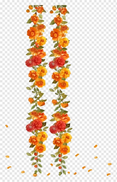 Tags: Indian festival botanical clip art decoration digital graphic falling petals festive flowers floral design floral garland flower border flower petals free png marigold nature orange flowers red flowers transparent PNG vibrant colors wedding flowers yellow flowers