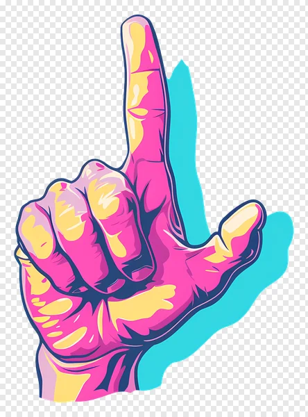 Add a splash of vibrant energy to your designs with this eye-catching pop art 'L' hand gesture PNG. Featuring bold pink, yellow, and blue hues with sharp outlines and a cool cyan shadow, this expressive graphic instantly stands out. Whether you're conveying a playful 'loser' sign, expressing 'love', or just need a stylish letter 'L' graphic, this high-quality, transparent PNG is perfect for diverse creative projects. Ideal for social media, digital art, presentations, merchandise, or any design needing a modern, retro-pop feel. Download this striking pop art hand gesture for free today and elevate your visual content!