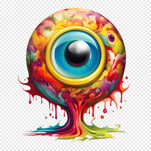 Dive into a world of vibrant imagination with our free psychedelic eye creature PNG. This stunning high-resolution image features an abstract, colorful eye with a glossy blue iris, golden rim, and an explosion of swirling, melting hues forming its unique body. Perfect for digital artists, graphic designers, or anyone seeking a unique, surreal illustration for their creative projects. Download this eye-catching, transparent background PNG instantly and add a splash of artistic flair to your website, social media, posters, or any design. Get your free, high-quality asset today and make your visions pop!