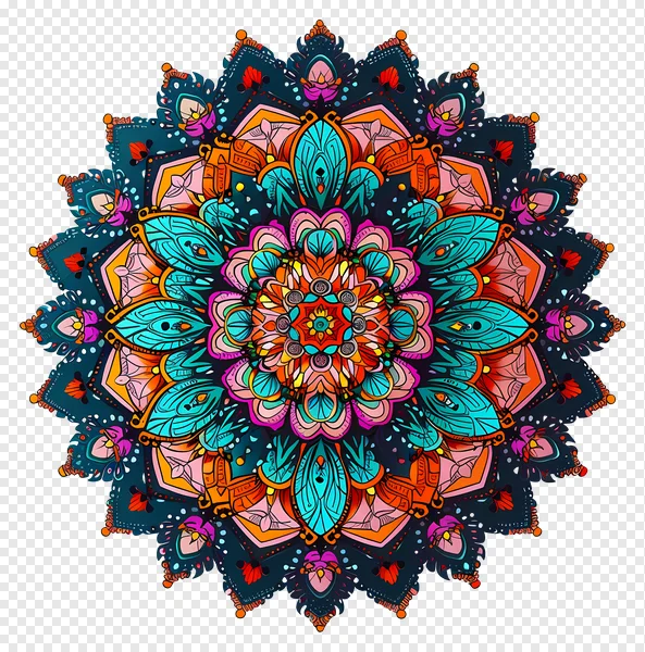 Tags: black background bohemian style colorful decorative ethnic floral motif free PNG download geometric design intricate pattern magenta mandala orange pink psychedelic art spiritual symmetrical teal vibrant