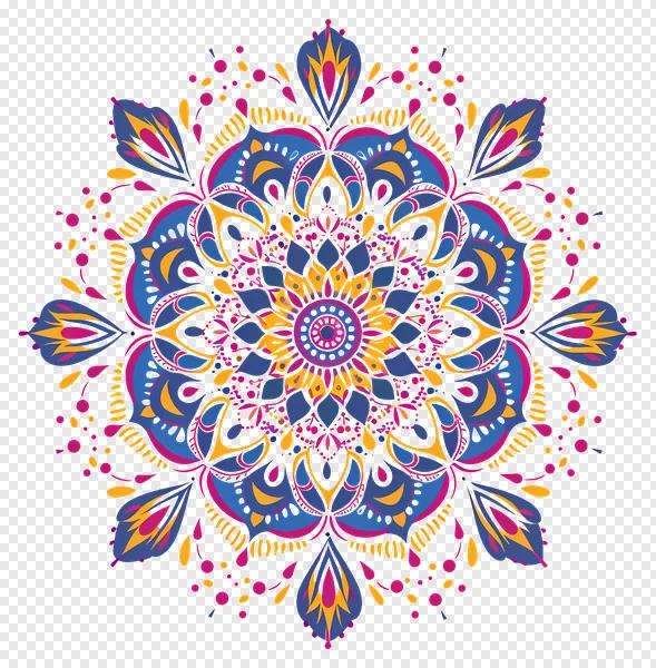 Tags: abstract art black background blue bohemian style colorful design decorative digital art floral illustration free PNG graphic design element intricate design mandala meditation art pink psychedelic mandala radial pattern spiritual art vibrant pattern yellow yoga