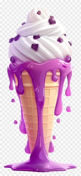 Dive into a sweet delight with our free transparent PNG of a vibrant purple dripping soft serve ice cream cone! This eye-catching 3D render features creamy white and light purple ice cream topped with glossy, rich purple syrup elegantly melting down a classic waffle cone. Scattered purple candies add an extra touch of deliciousness. Perfect for summer promotions, dessert menus, blog graphics, or any project needing a pop of color and sweetness. Download this high-quality, transparent PNG image today to instantly elevate your designs with a scrumptious, refreshing treat!