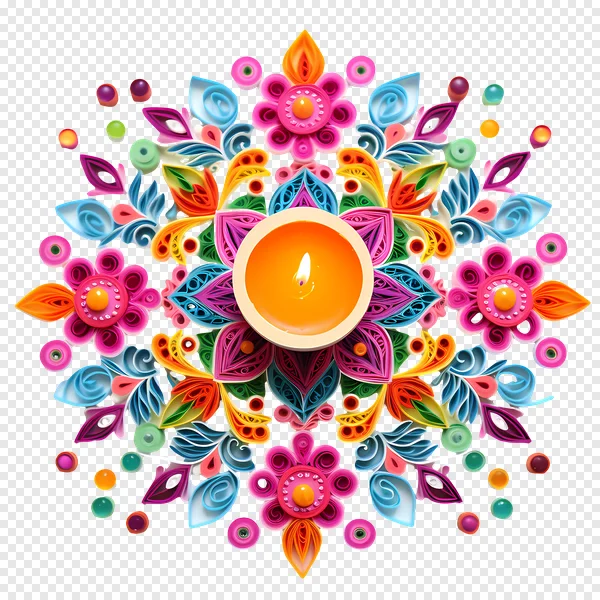 Tags: Diwali festival Hindu festival bright flame celebration colorful art festive illustration floral pattern free download glowing intricate design lit candle mandala ornate paper craft quilling art spiritual decoration symmetrical transparent PNG vibrant colors