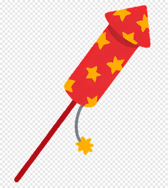 Elevate your festive designs with this vibrant free Firework Rocket PNG! Featuring a bold red rocket body adorned with cheerful yellow stars, a sturdy red stick, and a distinctive grey fuse with a star tip, this high-quality clipart is perfect for a myriad of celebrations. Ideal for New Year's Eve, 4th of July, Diwali, birthdays, parties, or any event requiring a pop of celebratory flair. Download this transparent background illustration instantly for your graphic design projects, social media posts, presentations, or digital scrapbooking. Get your free firework graphic now!