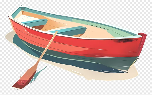 Looking for a free rowboat PNG? Discover our charming illustration of a classic red wooden boat, complete with a natural wooden oar, isolated on a transparent background. This high-quality, stylized dinghy graphic features a vibrant red hull, teal interior accents, and a clean, flat design. It's ideal for web design, digital art, educational materials, presentations, or adding a touch of classic maritime charm to any creative project. Perfect for designers, educators, and anyone needing a versatile, nautical-themed image. Download this beautiful, high-resolution watercraft PNG instantly and enhance your visuals for free!