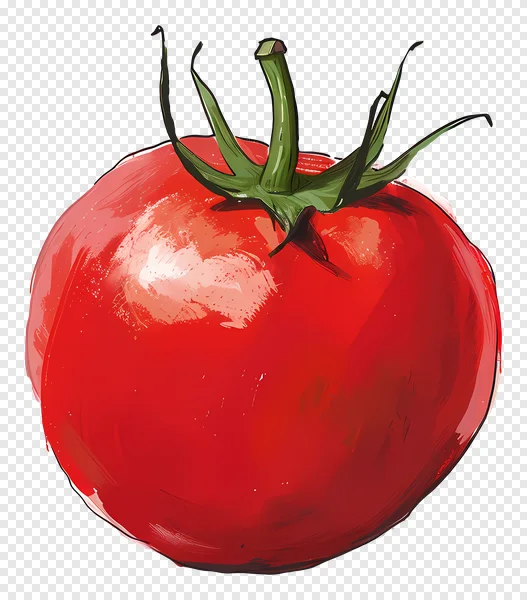 Capture the essence of freshness with this stunning vibrant red tomato illustration. Featuring rich, juicy hues and delicate green stem details, rendered in a unique digital painting style with a glossy finish. The solid black background makes this a perfect, clean cutout for a transparent PNG, offering maximum versatility for your design projects. Ideal for culinary blogs, recipe cards, healthy eating promotions, graphic design, or any visual content needing a pop of natural, healthy color and artistic flair. Download this high-quality, free transparent PNG today and add a burst of garden-fresh goodness to your creations!