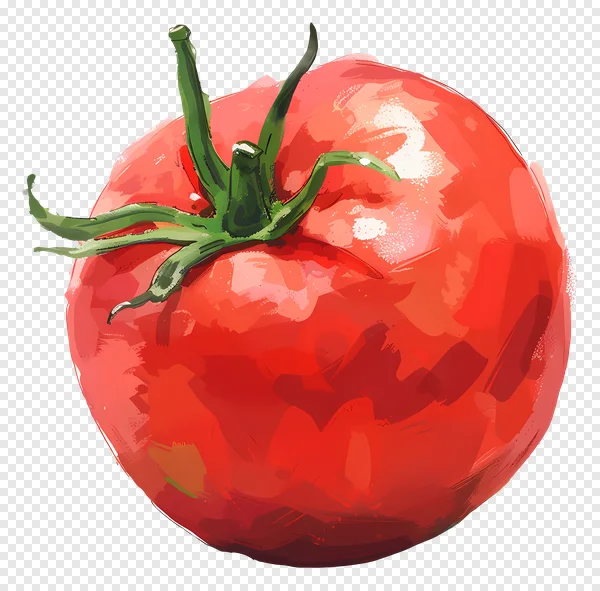 Download this stunning, free high-quality PNG image of a vibrant red tomato, perfect for your next project! This beautiful digital illustration showcases a fresh, ripe tomato with a lush green stem, rendered in a captivating painterly style that adds artistic flair. Ideal for culinary blogs, recipe websites, healthy eating promotions, graphic design, educational materials, or any kitchen and garden-themed designs. With its transparent background, this isolated, healthy vegetable clipart integrates seamlessly into any creative work. Get this versatile image for your personal and commercial use today and add a pop of color to your visual content!