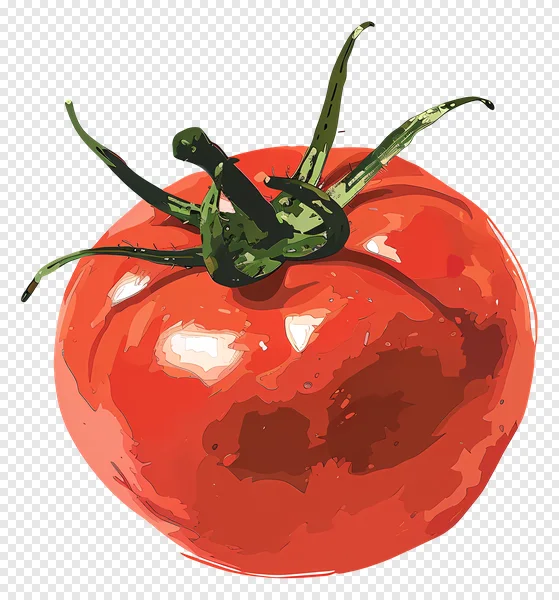 Download this vibrant red tomato illustration PNG for free! Perfect for adding a fresh, healthy touch to your designs. This stylized graphic features a ripe, juicy-looking tomato with its distinctive green stem and calyx on a transparent background, making it easy to integrate into any project. Ideal for food blogs, recipe websites, educational materials, menus, digital art, or print media. Get your high-quality, free tomato clip art now and elevate your creative work with this essential kitchen staple. No attribution required for personal or commercial use. Enhance your visual content with this eye-catching, vector-style fruit/vegetable PNG.