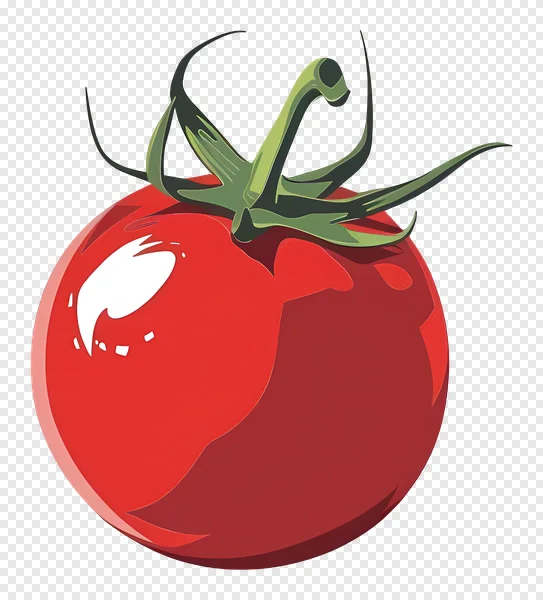 Download this vibrant red tomato PNG clipart for free! Featuring a crisp, high-quality illustration of a juicy, ripe tomato with its green stem and a glossy finish, perfect for your creative projects. This fresh vegetable graphic comes with a transparent background, making it ideal for web design, recipe blogs, educational materials, cooking-themed presentations, or any healthy food-related content. Enhance your designs with this eye-catching, healthy ingredient. Get your free vector-style tomato image today and add a pop of natural color to your work!