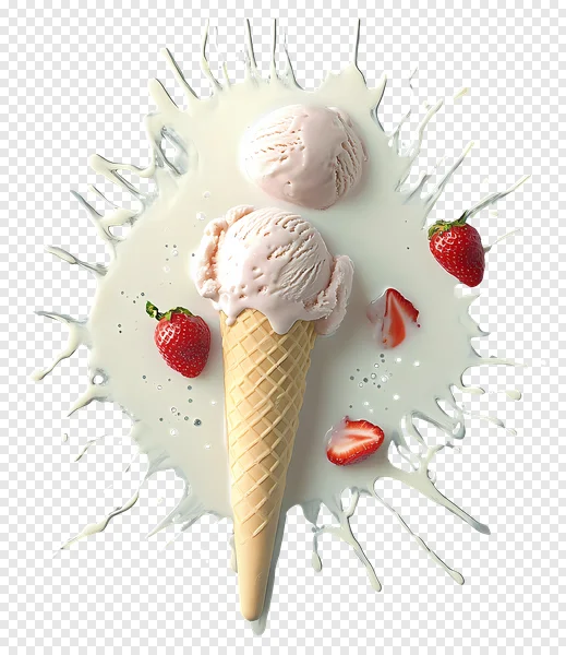 Indulge in this captivating free PNG download featuring a dynamic splash of creamy strawberry ice cream. A delicious scoop rests in a crispy waffle cone, surrounded by luscious milk splashes and fresh, vibrant strawberries on a striking black background. Perfect for food blogs, restaurant menus, advertising, digital art, social media posts, or any project needing a sweet, high-quality dessert image. This vibrant, high-resolution PNG is ready to elevate your designs. Download now and add a refreshing touch to your creative work!