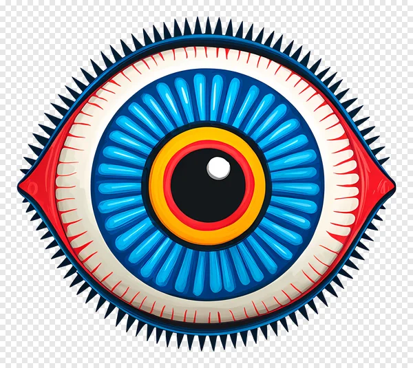 Unveil the enigmatic allure with our free, high-quality Stylized Evil Eye PNG. This vibrant, abstract illustration features a striking blue iris, bold yellow and red rings, white sclera with intricate red veins, and unique spiked edges, all on a transparent background. Perfect for adding a mystical touch to your graphic designs, web projects, digital art, or spiritual themes. Download this captivating, all-seeing eye vector graphic today and elevate your creative vision!