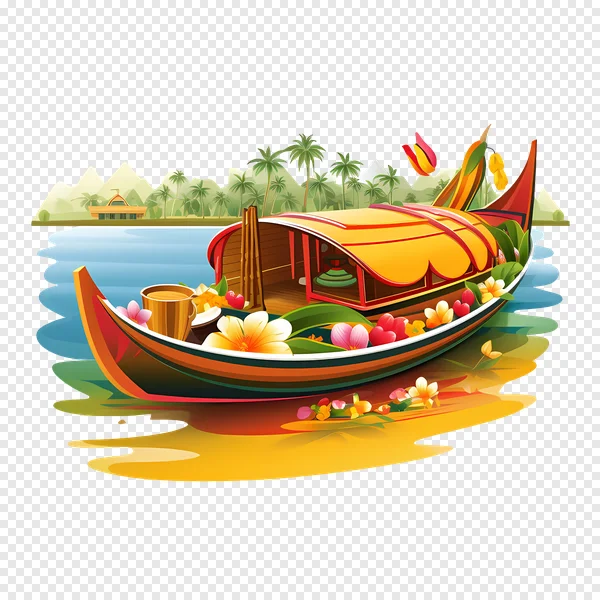 Immerse yourself in serene tropical vibes with this stunning, free high-quality PNG illustration. Featuring a beautifully decorated traditional boat, adorned with vibrant plumeria flowers, lush green leaves, and a delicate butterfly, it gently floats on calm blue waters. The picturesque background showcases towering palm trees, majestic mountains, and a cozy island bungalow, creating an idyllic paradise scene. This transparent, colorful graphic is perfect for enhancing travel blogs, vacation-themed designs, digital art projects, scrapbooking, or any creative endeavor needing a touch of exotic charm. Download this versatile clip art now to bring a piece of a tropical getaway to your designs instantly!
