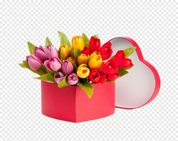 Tags: Mother's Day Valentine's Day anniversary birthday celebration floral arrangement flower bouquet gift box heart-shaped gift isolated love pink tulips present red heart box red tulips romance spring flowers transparent PNG tulips yellow tulips
