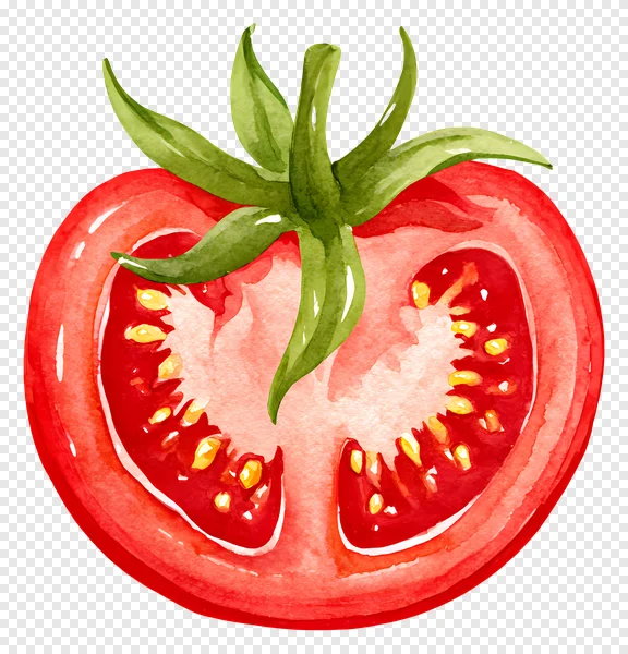 Bring a splash of fresh color to your designs with this exquisite watercolor sliced tomato PNG. This high-quality illustration captures the vibrant red flesh, intricate green stem, and delicate yellow seeds of a perfectly cut tomato half, rendered in a beautiful hand-painted style. Ideal for food blogs, recipe cards, restaurant menus, healthy eating promotions, or any project needing a touch of natural, garden-fresh appeal. With its transparent background, this versatile clip art is ready to be layered seamlessly into your creative work. Download this juicy tomato illustration for free and enhance your visual content today!