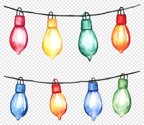 Tags: Christmas lights bright celebration colorful PNG decorative lights digital illustration fairy lights festive decoration free download garland glowing lights hand-painted holiday lights light bulbs party lights red yellow teal blue string lights transparent background vibrant watercolor lights