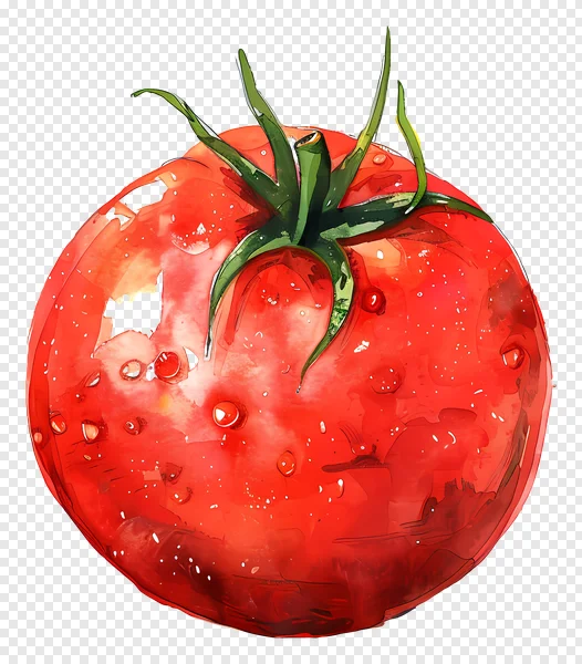 Download this stunning watercolor tomato PNG for free! Featuring a vibrant red tomato with lush green leaves and sparkling water droplets, this artistic illustration is perfect for food blogs, recipe cards, healthy eating promotions, or any design project needing a fresh, organic touch. The hand-drawn watercolor style gives it a unique charm. Its transparent background makes it easy to integrate into your creations. Get your high-quality, free PNG now and add a splash of color to your next design. Ideal for digital art, culinary themes, graphic design assets, and educational materials.