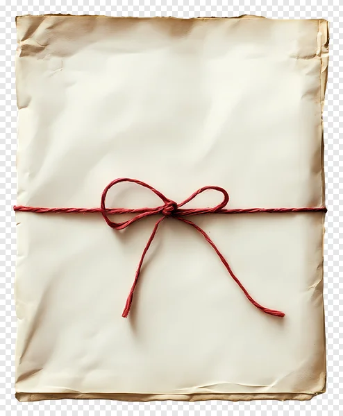 Download this high-quality free PNG of a vintage aged paper stack tied with a rustic red string bow. Perfect for adding a classic, distressed texture and old-world charm to your graphic design projects, digital scrapbooking, presentations, or invitations. This blank, antique paper bundle with a transparent background offers versatility for various creative uses, from historical themes to elegant retro designs. Get this unique, old document background with intricate details and a beautiful red ribbon accent for your next project, completely free!